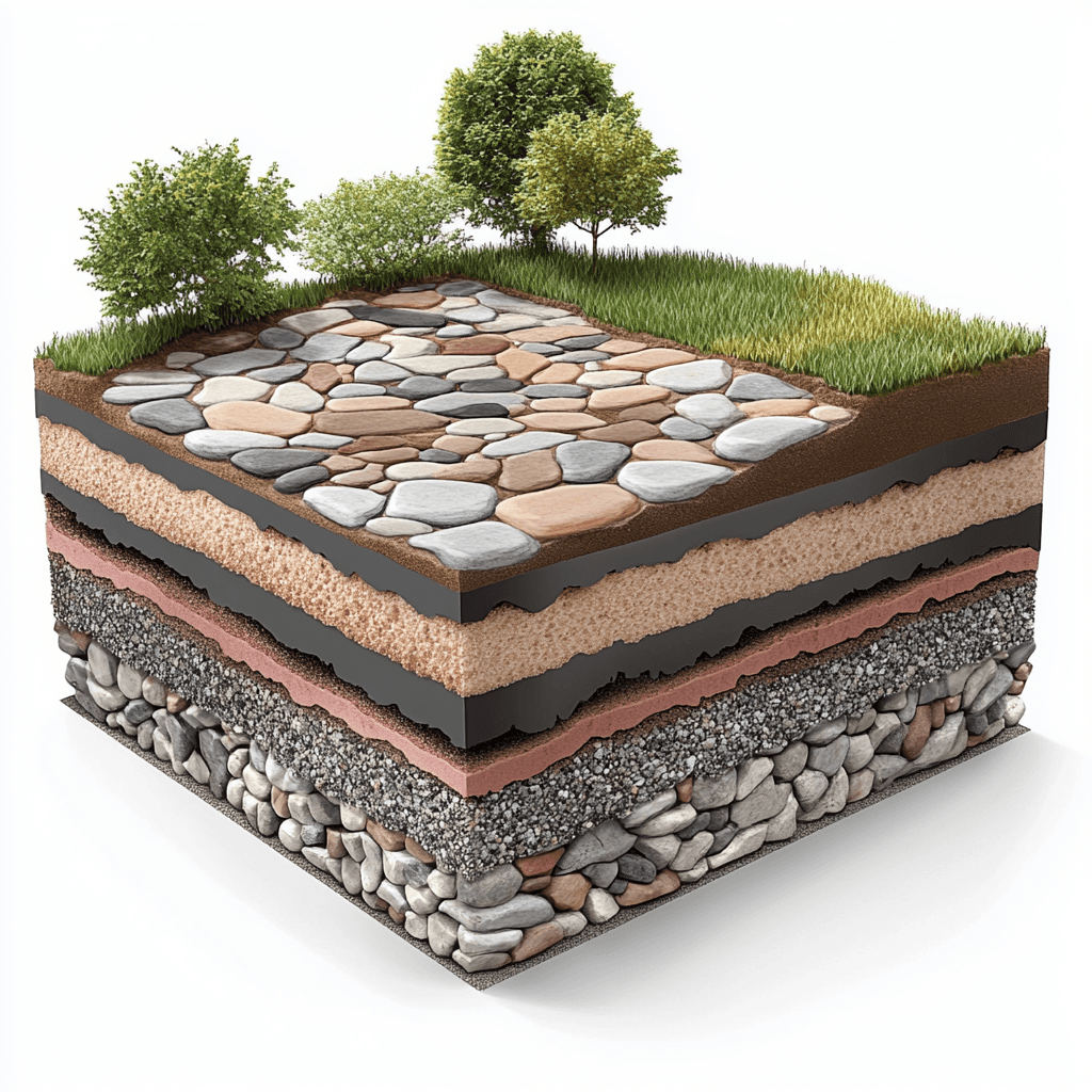 Dobrze wykonana podbudowa zapobiega zapadaniu się kostki, powstawaniu kolein i rośnięciu chwastów.